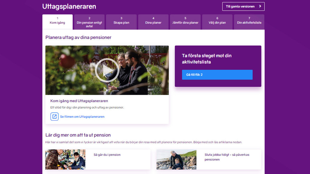 I Uttagsplaneraren får du koll på din pension efter skatt, skapar pensionsplaner, sparar och jämför dem mot varandra. När du väljer din plan får du stöd för att ansöka om uttagen.